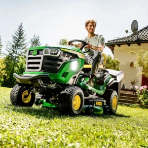 Tondeuse autoportée à éjection latérale JOHN DEEERE X350 La tondeuse autoportée X350 est parfaite pour ceux qui recherchent un tracteur de jardin d’entrée de gamme abordable et performant. Grâce à ses caractéristiques modernes et ergonomiques, elle assure une expérience de tonte sans effort et de haute qualité. Caractéristiques principales : Facile à…