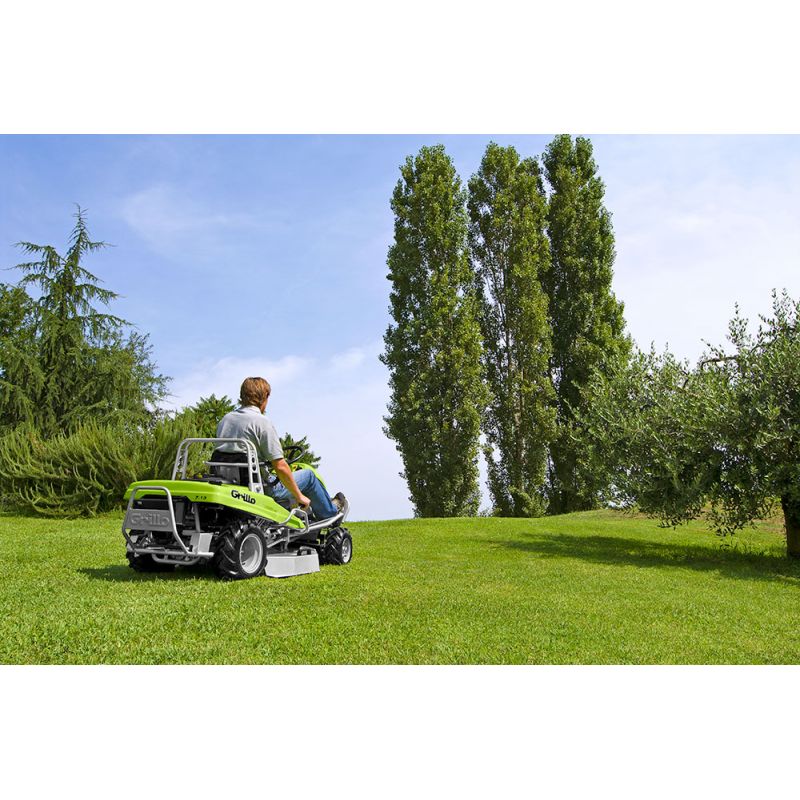 - L’essieu avant basculant ainsi que les roues à profil agraire offrent une adhérence et une traction optimale sur les terrains accidentés.